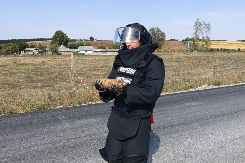 În timpul lucrărilor de modernizare a unui drum județean, mai mulți muncitori au observat luni, 2 septembrie 2024, un obiect ce părea a fi un element de muniție. Ei au cerut imediat ajutorul autorităților.