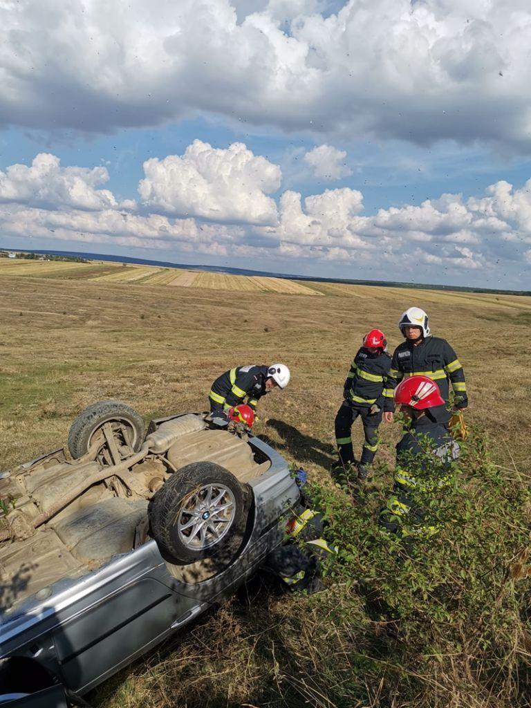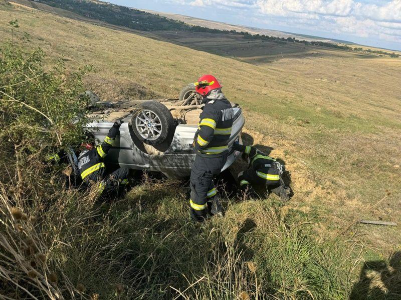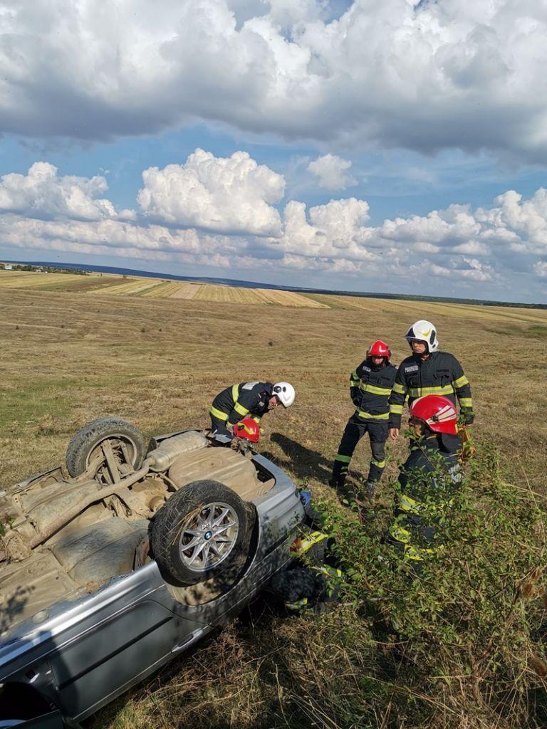 Pompierii au găsit mașina răsturnată pe plafon. Femeia care se află la volan era ieșită din interior. Aceasta a fost preluată de ambulanța SAJ și transportată la Unitatea de Primiri Urgențe Botoșani.