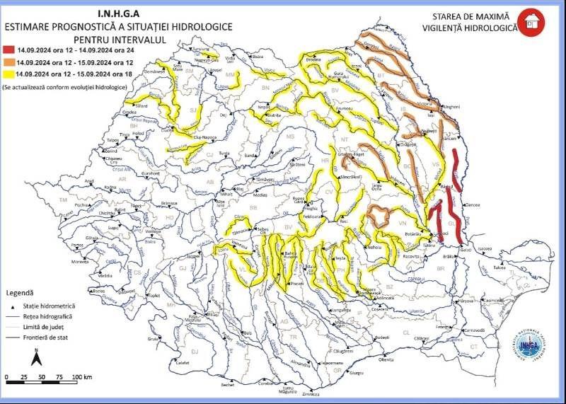 Și hidrologii au actualizat prognoza și au anunțat că există, în continuare, risc de inundații pe râurile Jijia, Prut și afluenții acestora și au instituit :