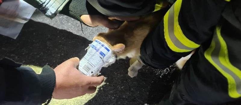 Poficioasă peste măsură, o pisică a dat de necaz când a găsit o conservă cu hrană pentru feline pe stradă. Fără să stea pe gânduri, a bagat capul și rămas blocată. Zgomotul făcut de pisică în încercarea de a se elibera i-a atras atenția unui bărbat. Acesta și-a dat seama că nu poate să o ajute și a sunat la pompieri.