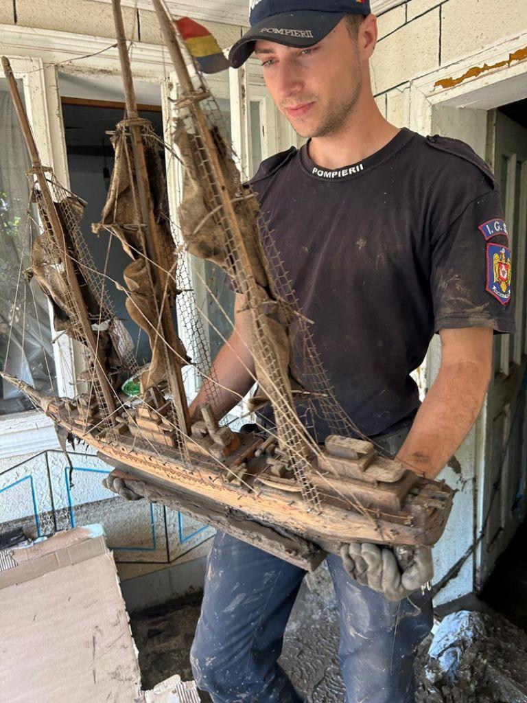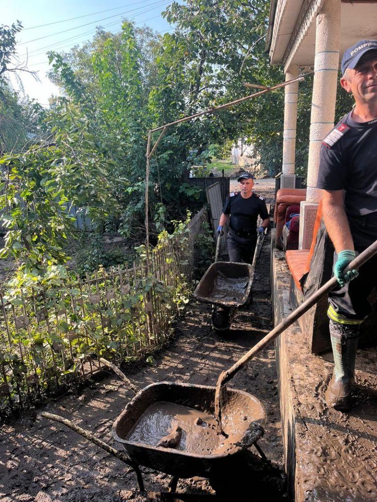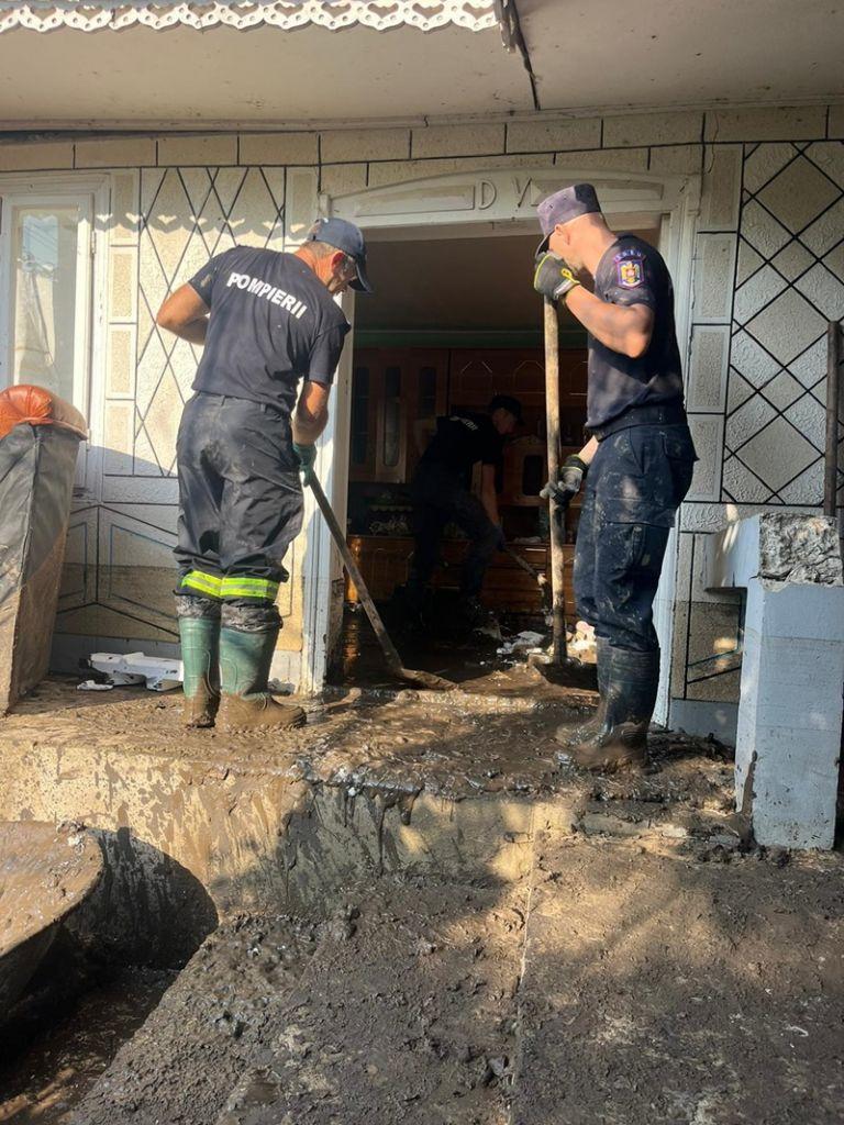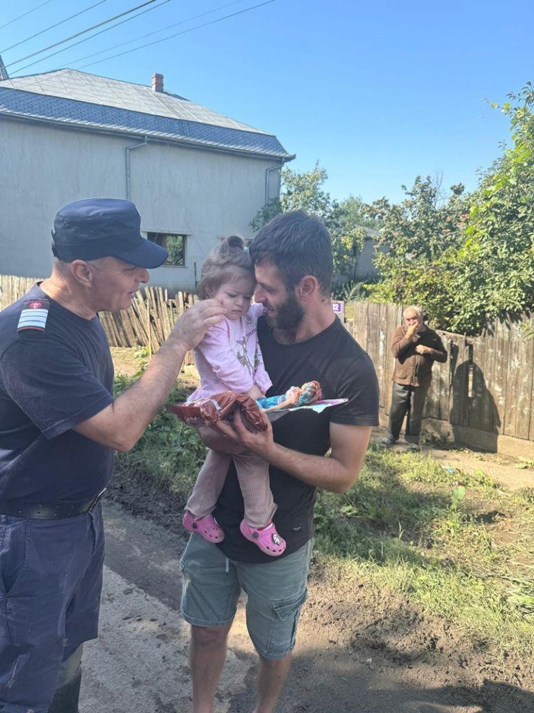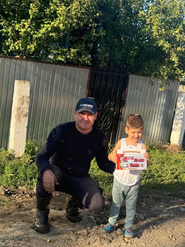 Pe lângă înlăturarea efectelor inundațiilor, pompierii botoșăneni au oferit și suport emoțional oamenilor afectați, jucării și dulciuri pentru copii.
