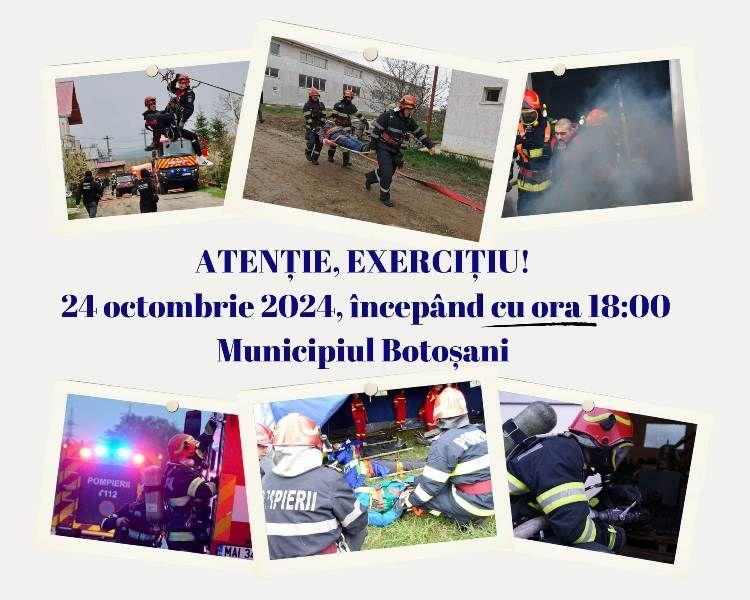 Astăzi, începând cu ora 18:00, Inspectoratul pentru Situații de Urgență „Nicolae Iorga” al Județului Botoșani va organiza un exercițiu cu forțe și mijloace la o fabrică de producție și depozitare a băuturilor alcoolice din municipiul Botoșani.