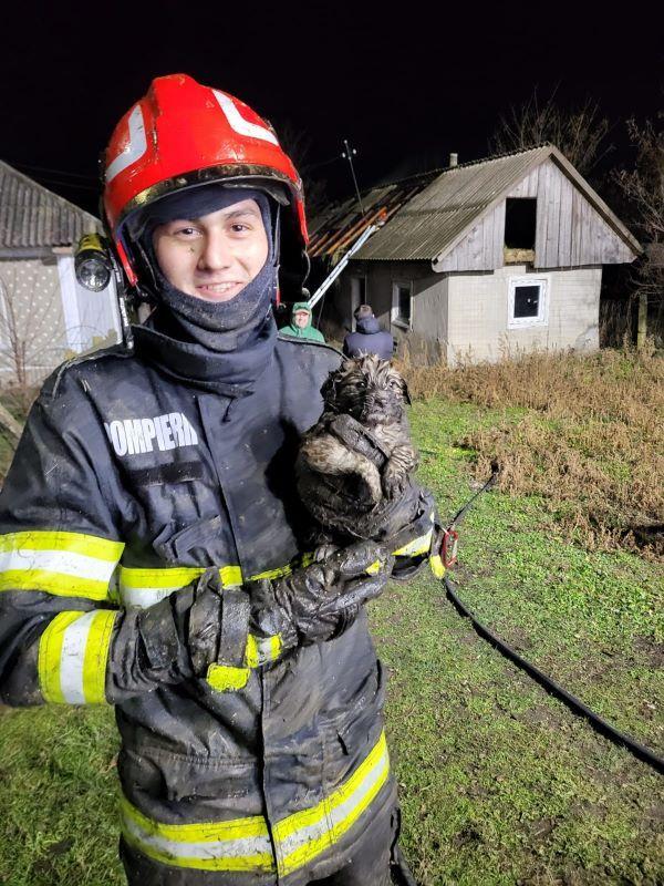 Pompierii au salvat din anexa cuprinsă de flăcări doi cățeluși.