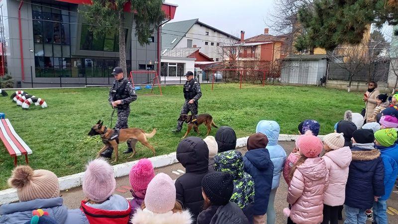 Activitățile s-au încheiat cu exerciții de disciplină canină și intervenție a câinilor de serviciu din dotarea Inspectoratului de Jandarmi Județean Botoșani și cu recomandări pentru prevenirea atacului canin.