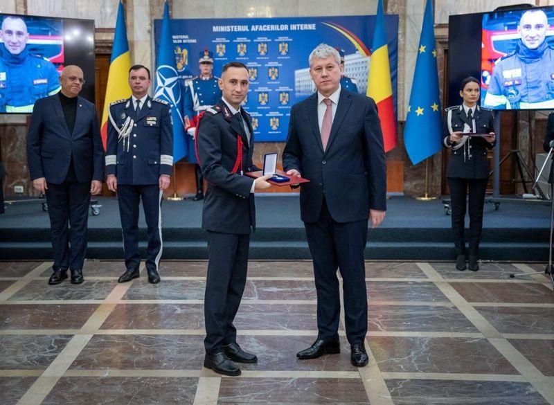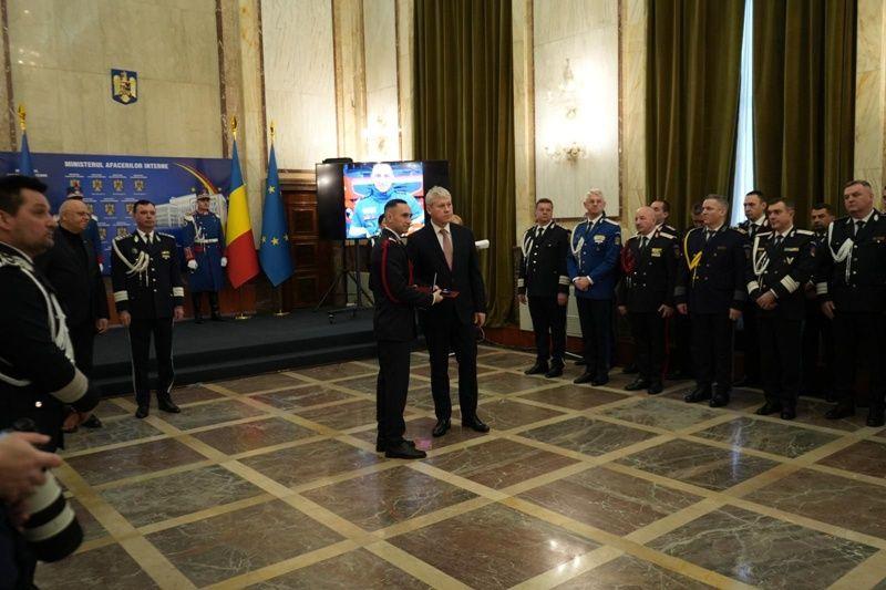 Ministrul Afacerilor Interne, Cătălin Predoiu, i-a oferit distincția luni, 17 decembrie 2024, în cadru festiv. Acesta a fost felicitat și de șeful Departamentului pentru Situații de Urgență, dr. Raed Arafat și de inspectorul general al IGSU, general Dan Paul Iamandi. Pe 22 august a.c., subofițerul din Detașamentului de Pompieri Botoșani se afla la un service auto din municipiul Botoșani. Un zgomot puternic l-a oprit din ceea ce făcea. Instinctiv a luat stingatorul din mașină și a fugit spre locul unde a observat că un fum negru se ridica spre cer. A crezut că a avut loc un accident rutier sau o explozie, urmată de incendiu. Imaginile de la fața locului erau greu de privit, chiar și pentru un om călit în misiuni.