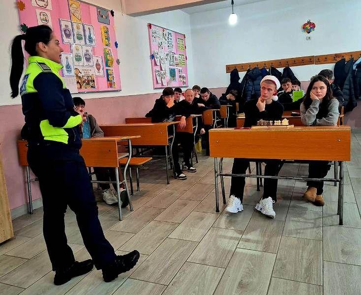Polițiștii rutieri au desfășurat luni de 16 decembrie, activități de prevenire cu elevii Școlii Primare nr. 3 Dragalina, din comuna Cristinești și elevii Liceului Sportiv, din municipiul Botoșani, în cadrul programului derulat în Săptămâna Altfel.