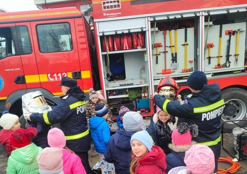 Autospecialele de stingere cu apă și spumă, autospeciala de lucru la înălțime, autospeciala de descarcerare și ambulanța SMURD, toate au fost studiate, îndeaproape, de vizitatori. Aceștia au avut ocazia să vadă cum se folosește fiecare accesoriu, în parte. Copiii au urcat, pe rând, în autospecialele de intervenție și au aflat cum protejează servanţii pompieri pe timpul incendiilor cu ajutorul aparatului de respirat cu aer comprimat şi a căştii de protecţie.