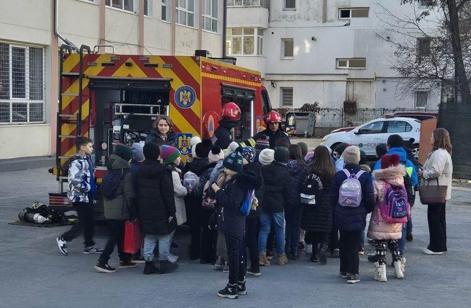 Pompierii le-au vorbit, pe înțelesul lor, despre comportamentul în cazul producerii unui incendiu în incinta școlii, prezentându-le următorii pași: