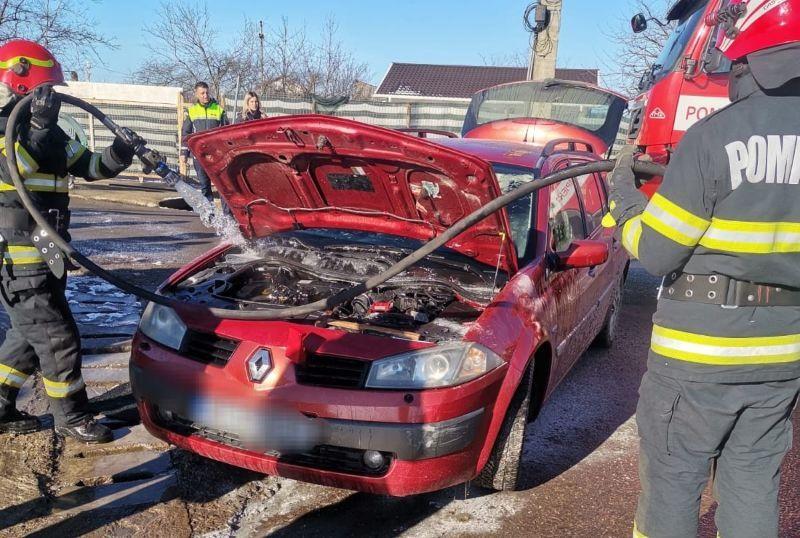 Conducătorul auto a observat că iese fum de sub capotă, a oprit mașina, a coborât imediat și a sunat după ajutor la 112. La caz s-au deplasat pompierii din cadrul Detașamentului Botoșani, cu o autospecială de stingere cu apă și spumă.