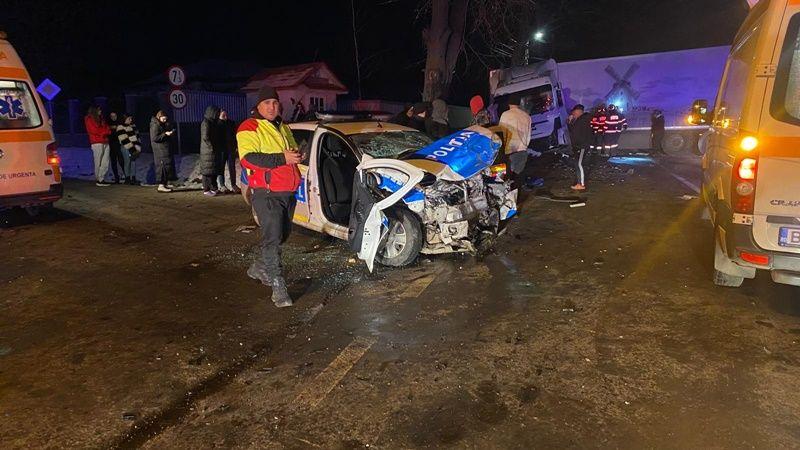 În urma impactului au rezultat trei victime, doi polițiști de 40 și 22 de ani și conducătorului celuilalt autovehicul, un tânăr de 27 de ani.