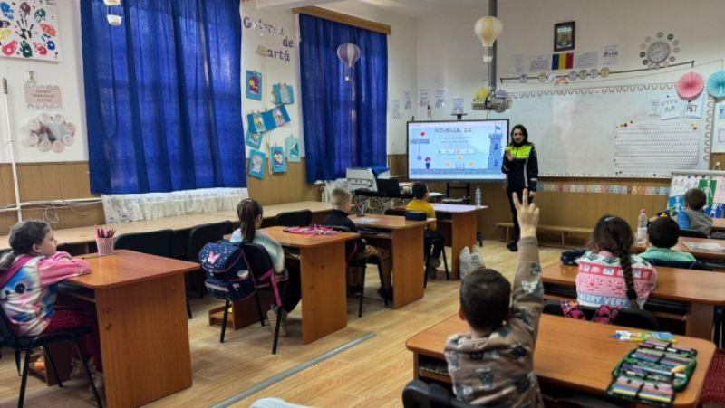 În cadrul întâlnirilor care au avut loc cu copiii, aceştia au fost informaţi într-un mod cât mai interactiv pe diverse teme: siguranţă în clasă, siguranţa în pauză, prevenirea, recunoaşterea şi gestionarea bullyingului, relaţiile cu colegii, când lipsesc părinţii de acasă, situaţiile periculoase, copilul şi accesarea internetului, siguranţa în curte, deplasarea pe stradă şi traversarea carosabilului, mersul pe bicicletă în siguranţă şi copilul ca pasager.