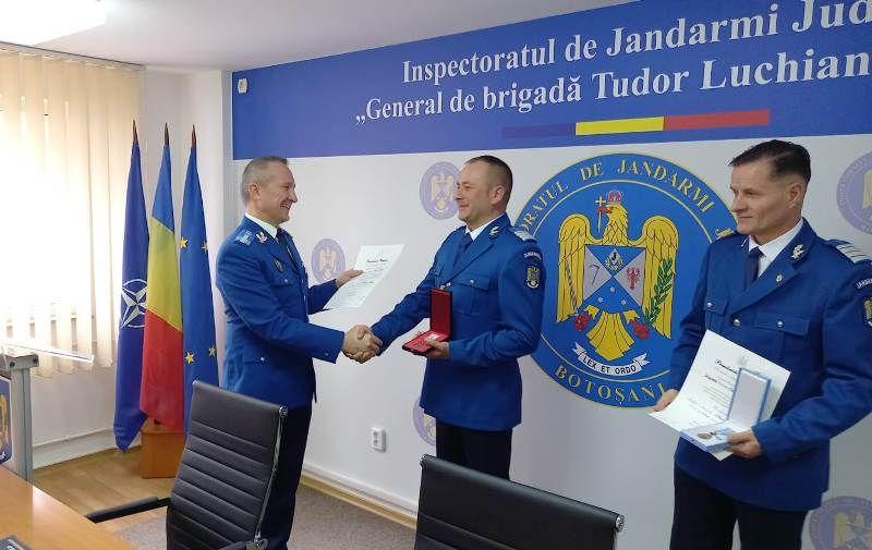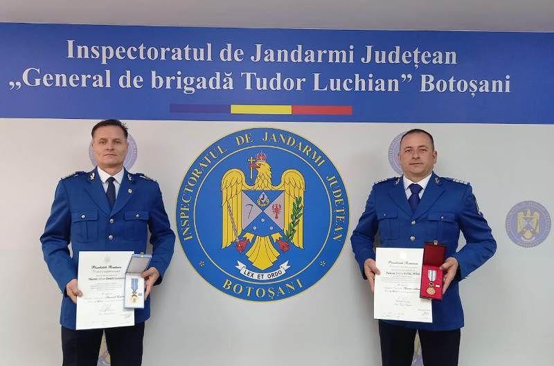 Plutonierul adjutant șef Macovei Daniel- Constantin și plutonierul adjutant șef Parasca Ovidiu-Mihai sunt cei doi subofițeri din cadrul Inspectoratului de Jandarmi Județean Botoșani cărora le-au fost conferite medalii naționale, atăt pentru conduita profesională exemplară pe timpul executării misiunilor încredințate, în cadrul cărora au obținut rezultate foarte bune, cât și în timpul liber, când au intervenit pentru salvarea unor persoane sau au acordat sprijin cetățenilor la solicitările acestora, în situații inedite.