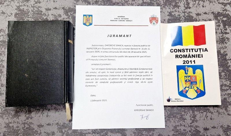 Astăzi, 11 februarie 2025, în cadrul unui moment solemn, d-ra jurist Bianca Gheorghe, noul funcționar public al Primăriei comunei Ibănești, a depus jurământul!