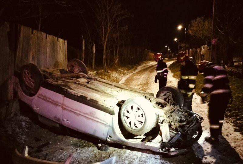 Aceștia au constatat faptul că autoturismul era răsturnat pe cupolă și nu erau persoane în interior. Pompierii au acționat pentru înlăturarea pericolului de incendiu.