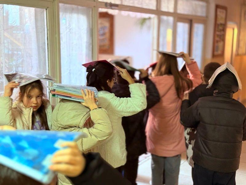 La auzul semnalelor acustice, elevii au reacționat imediat și s-au protejat de cutremur, sub bănci. Aceștia au așteptat un semnalul, iar apoi, însoțiți de profesori, au ieșit din sălile de clasă în siguranță și s-au adunat pe locurile de evacuare stabilite.