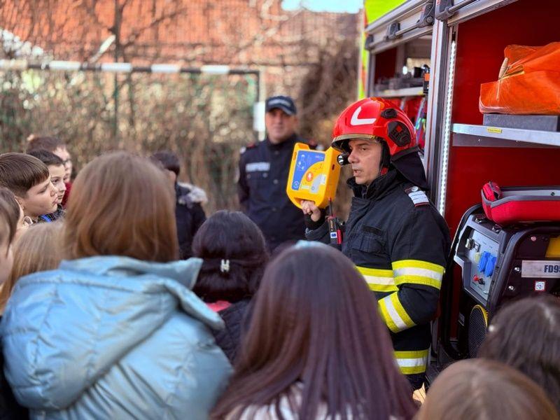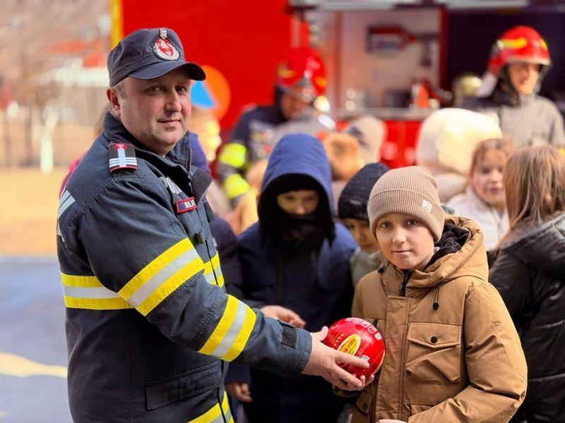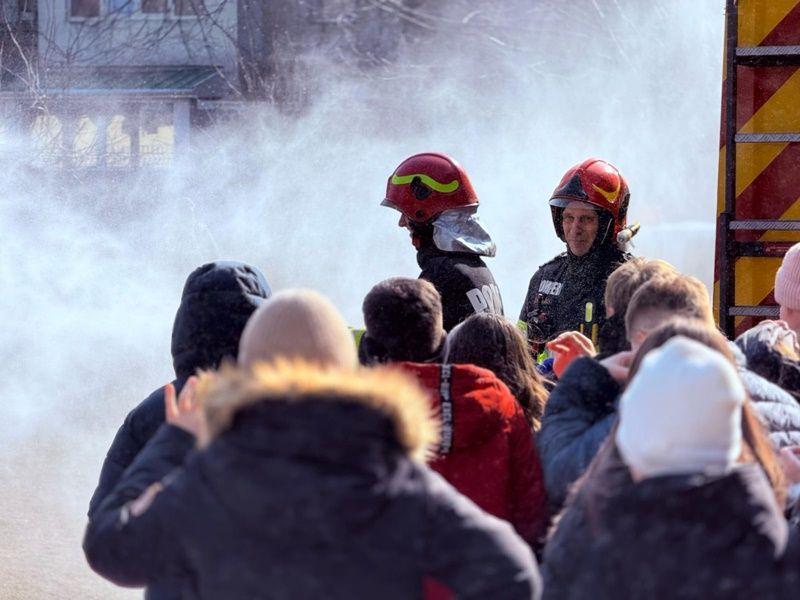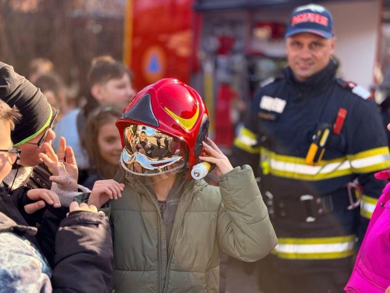 La finalul exercițiilor, copiii au avut ocazia să vadă îndeaproape autospecialele folosite în misiunile operative, au probat echipamentele de protecție folosite de pompieri și au aflat cum se utilizează fiecare accesoriu în parte.