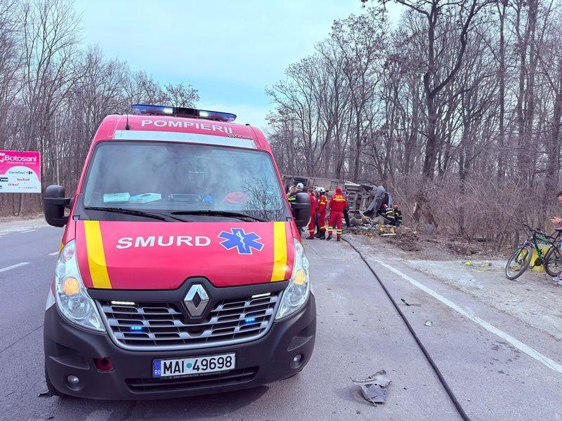 La caz s-au deplasat pompierii din cadrul Detașamentului Botoşani, cu o autospecială de stingere, una descarcerare, dar și ambulanța de terapie intensivă mobilă SMURD. Aceștia au constat faptul că nu erau persoane încarcerate. Șoferul autoutilitarei a fost rănit, fiind preluat de echipajul medical și transportat la spital pentru îngrijiri de specialitate.