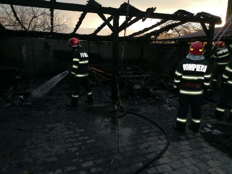 Au ars construcția, care avea o suprafață de aproximativ 50 de metri pătrați, două ATV-uri, trei biciclete, o masă din lemn, două uși și un geam, mai multe anvelope și unelte. Un autoturism, nouă geamuri și o ușă au fost afectate de căldura degajată. Pompierii au salvat casa de locuit.