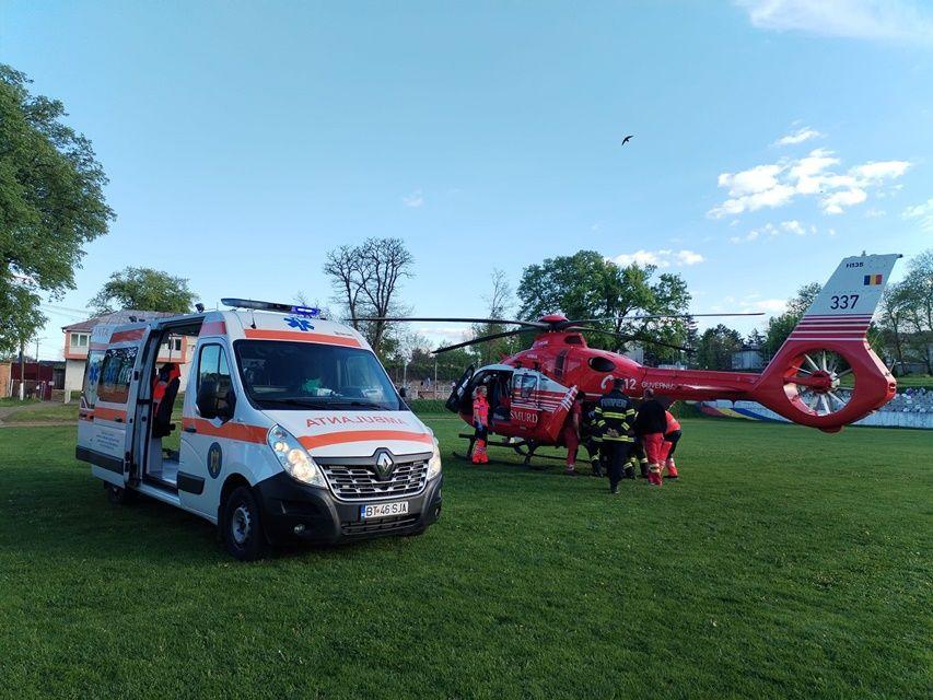 Elicopterul SMURD a fost solicitat la Dorohoi, sâmbătă, 26 aprilie 2025, pentru două cazuri grave. În prima parte a zilei o femeie în vârstă 77 de ani, în stare gravă, cu diagnosticul infarct miocardic acut, a fost transportată la Iași pentru investigații de specialitate.