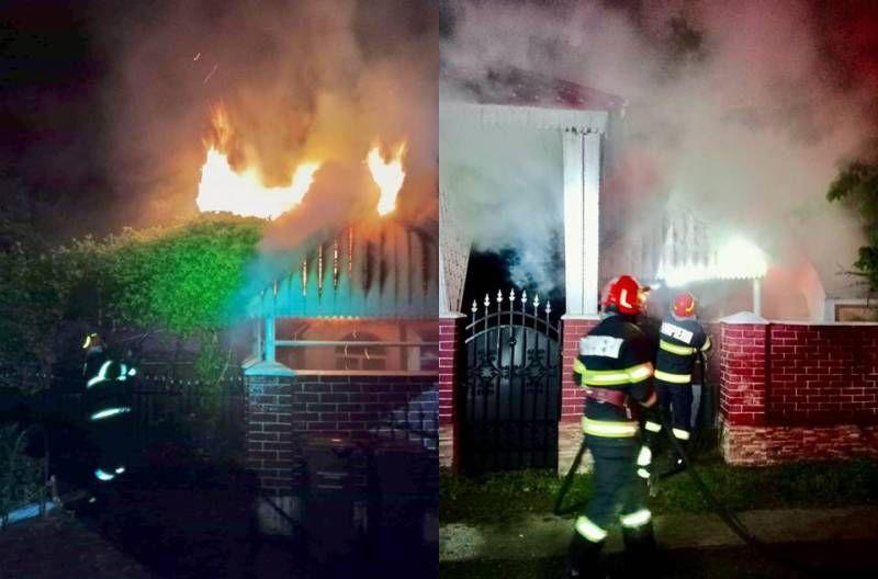 Acoperișul unei fântâni a luat foc din cauza unui cablu electric defect, iar flăcările amenințau să se extindă și la casa de locuit.