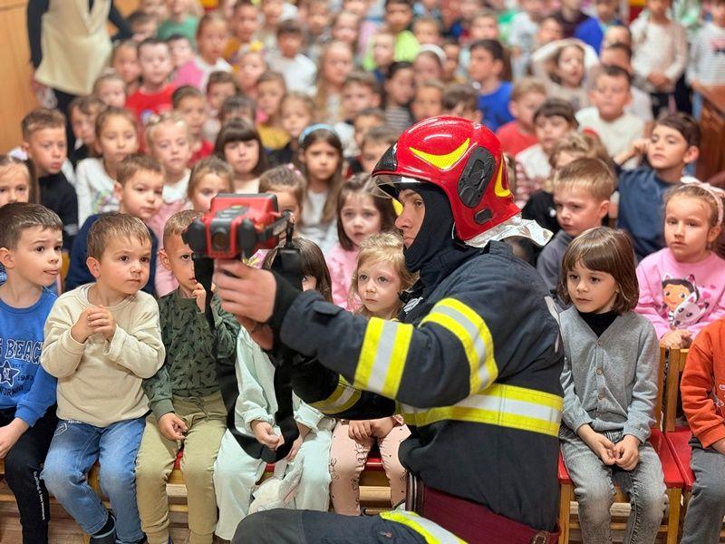 Timp de o oră, copiii au discutat cu pompierii, au pus întrebări și au aflat cum să se comporte în situații periculoase, fie că este vorba despre un incendiu, un accident casnic sau cum să se protejeze în caz de cutremur. Totodată , ei au avut ocazia să vadă o parte din echipamentele de protecție și intervenție folosite de salvatori în misiuni.