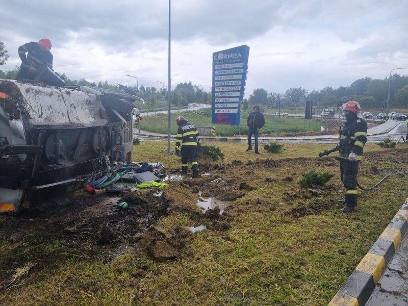 La fața locului intervin mai multe echipaje de Poliție și pompieri din cadrul ISU Botoșani. Șoferul în vârstă de 40 de ani a avut nevoie de îngrijiri medicale, în urma unui accident rutier produs pe DE 58, la ieșirea din municipiul Botoșani. Evenimentul a avut loc în urmă cu puțin timp, după ce autocisterna în care se afla, s-a răsturnat.