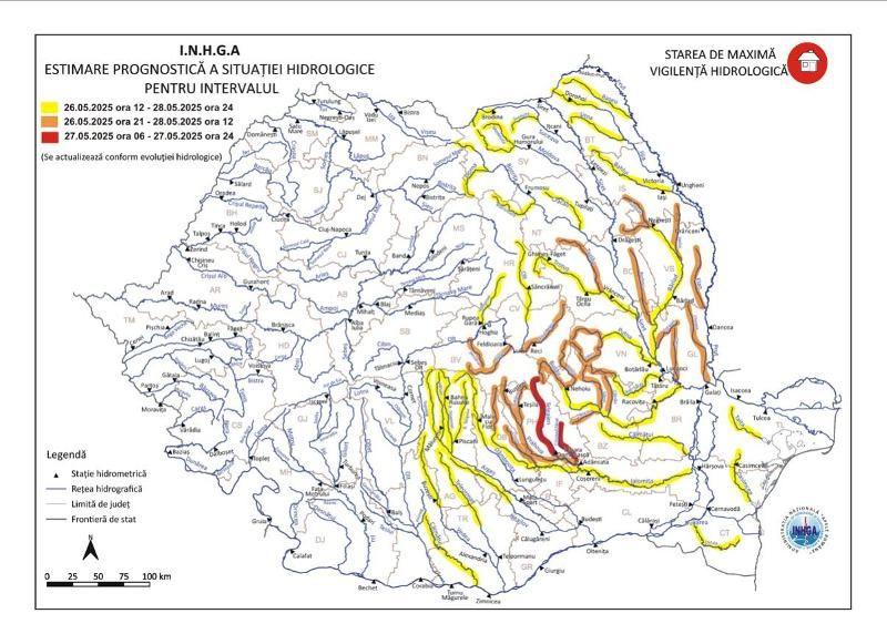 Fenomenele prognozate sunt „scurgeri importante pe versanţi, torenţi, pâraie, viituri rapide pe râurile mici cu posibile efecte de inundaţii locale şi creşteri de debite şi niveluri cu posibile depăşiri ale COTELOR DE APĂRARE".