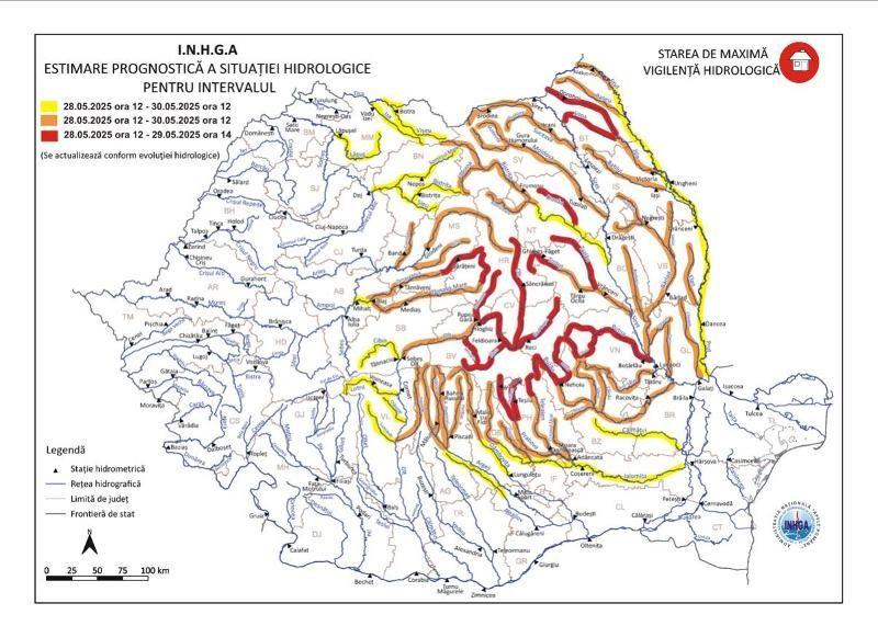 Cod Roșu de inundații pe râul Jijia -  bazin amonte S.H. Todireni şi afluenţii aferenţi sectorului aval S.H. Todireni – amonte confluenţă cu râul Bahlui. Hidrologii au anunțat că există, în continuare, risc de inundații râul Jijia și au instruit Cod Roșu de inundații, până mâine, la ora 14:00.