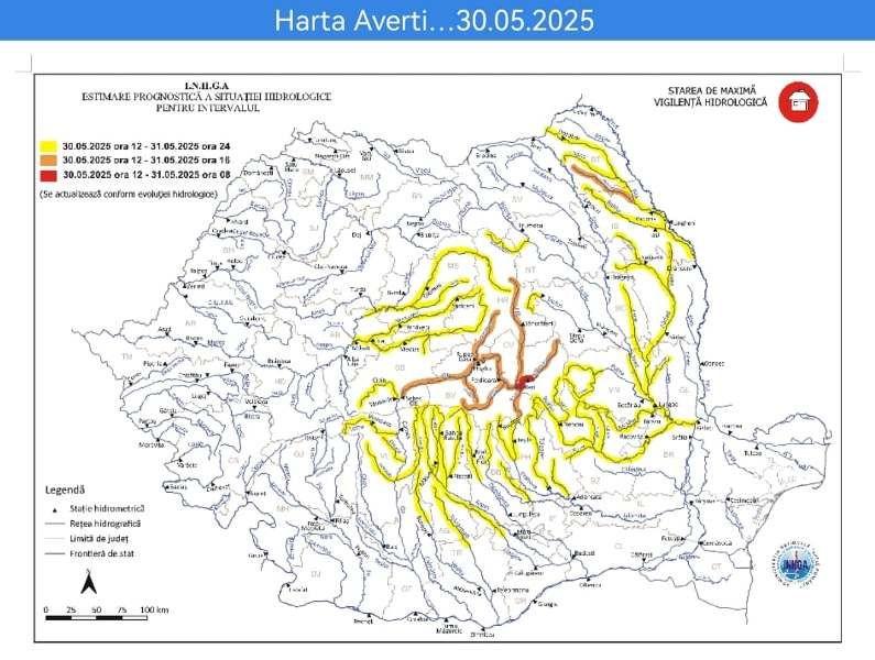 Fenomenele prognozate sunt „ Scurgeri importante pe versanţi, torenţi şi pâraie, viituri rapide pe râurile mici cu posibile efecte de inundaţii locale şi creşteri de debite şi niveluri pe unele râuri din bazinele hidrografice menţionate, cu posibile depăşiri ale COTELOR DE APĂRARE”.