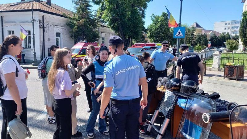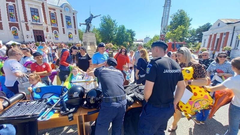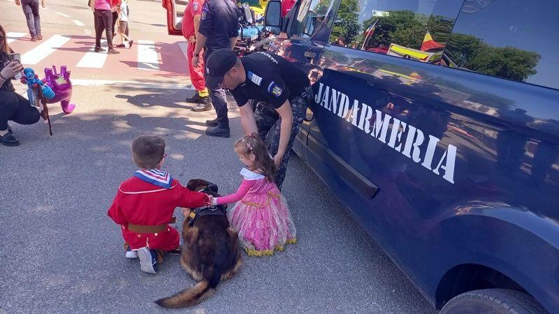 De asemenea, copiii au avut ocazia să se fotografieze cu câinii de serviciu și au putut vedea mijloacele de intervenție, precum și autospecialele pe care jandarmii le folosesc pe timpul misiunilor, iar elevii de liceu au primit pliante cu informații despre cariera militară în Jandarmeria Română.