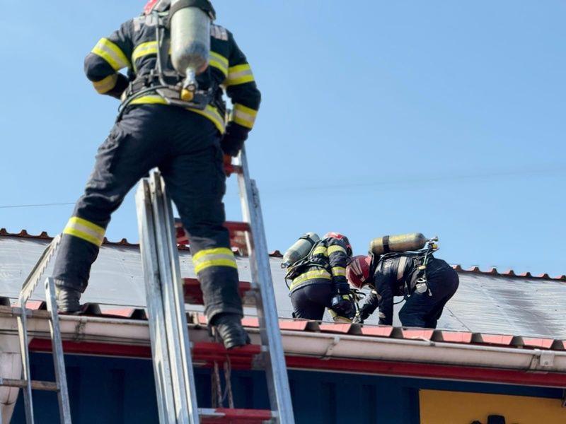 Aceștia au constatat faptul că ardeau cabluri electrice și piese din cauciuc folosite în activitatea de montaj uși secționale și automatizări porți. Pompierii au acționat rapid astfel încât flăcările să nu se extindă la bunurile din interior, dar și la acoperișul clădirii.