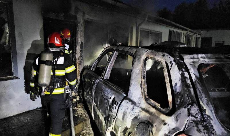 Pompierii au acționat rapid astfel încât flăcările să nu se extindă la întreaga clădire, cu o suprafață totală de aproximativ 300 de metri pătrați, dar și la alte patru autoturisme din apropiere.
