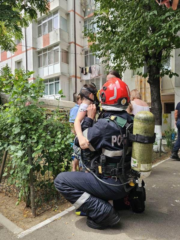 Concomitent cu acțiunea de evacuare, pompierii au intervenit rapid, astfel încât flăcările să nu se extindă. Aceștia au folosit și un ventilator pentru evacuarea fumului din interiorul scării de bloc.