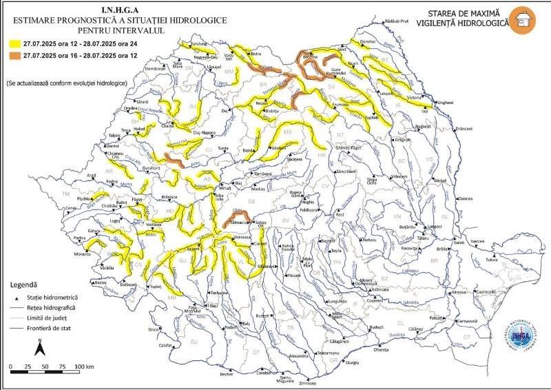 Fenomenele prognozate sunt „scurgeri importante pe versanţi, torenţi, pâraie, viituri rapide pe râurile mici cu posibile efecte de inundaţii locale şi creşteri de debite şi niveluri cu posibile depăşiri ale COTELOR DE APĂRARE ”.
