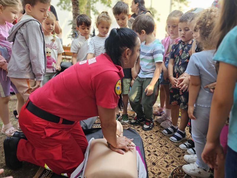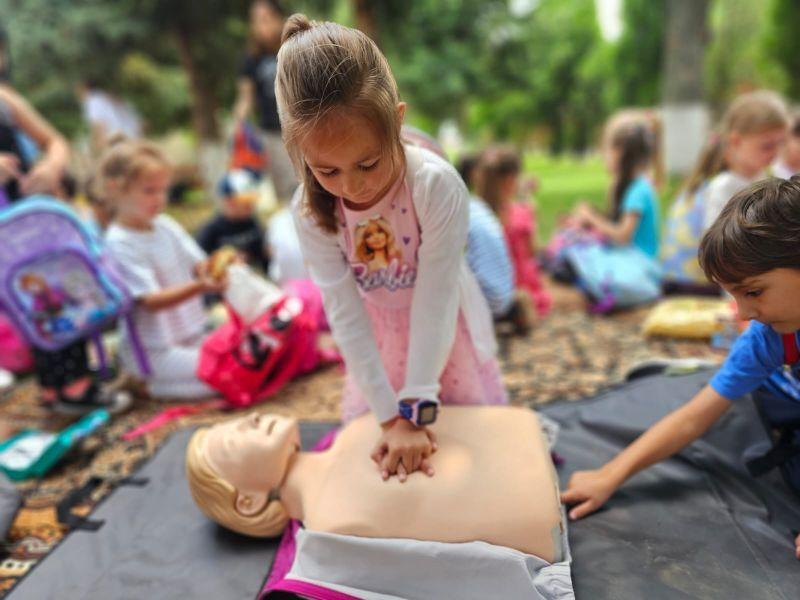 Prim ajutor – Activitatea a fost susținută de Simona Jitaru, voluntar în cadrul programului „Salvator din Pasiune”, care le-a arătat copiilor cum pot interveni în caz de urgență medicală. Cel mai interesant moment a fost legat de manevra Heimlich – folosită atunci când cineva se îneacă și nu mai poate respira. Cu ajutorul unor veste speciale, copiii au exersat pas cu pas ce trebuie făcut.
