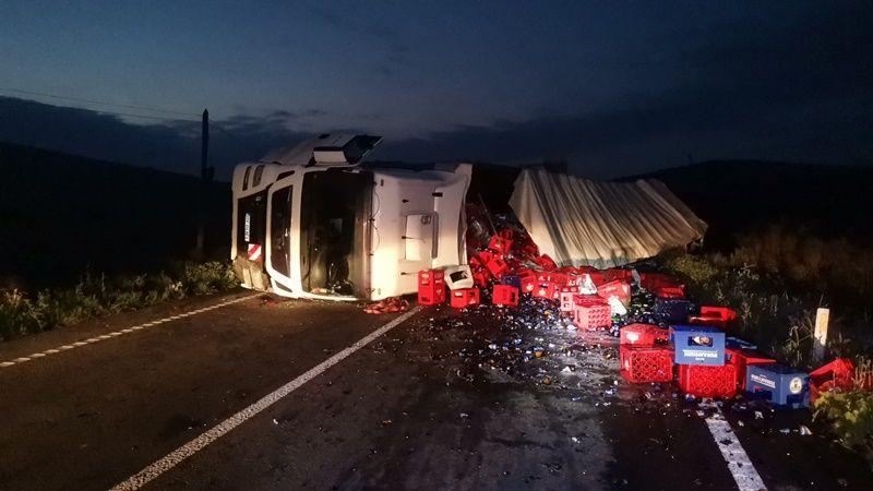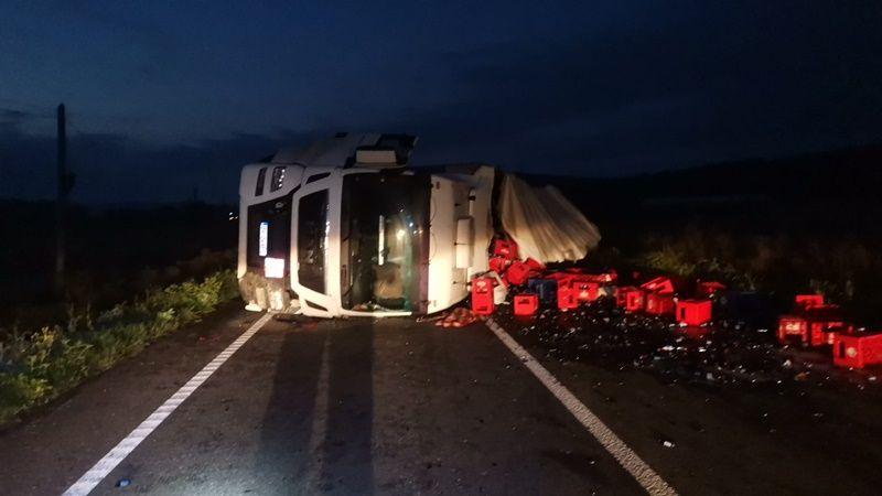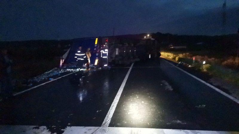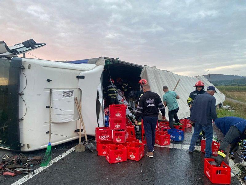 Un accident rutier a avut loc, noaptea trecută, 12 august 2025, pe E 58, în localitatea Copălău. Un tir încărcat cu 24 de tone de bere s-a răsturnat pe partea carosabilă, blocând circulația în zonă.