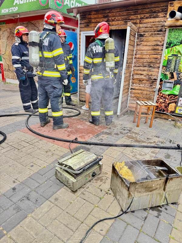 Aceștia au constatat faptul că ardea cu flacără și dejări mari de fum uleiul din aparatul de gătit și au acționat rapid astfel încât flăcările să nu se extindă la întreaga construcție.