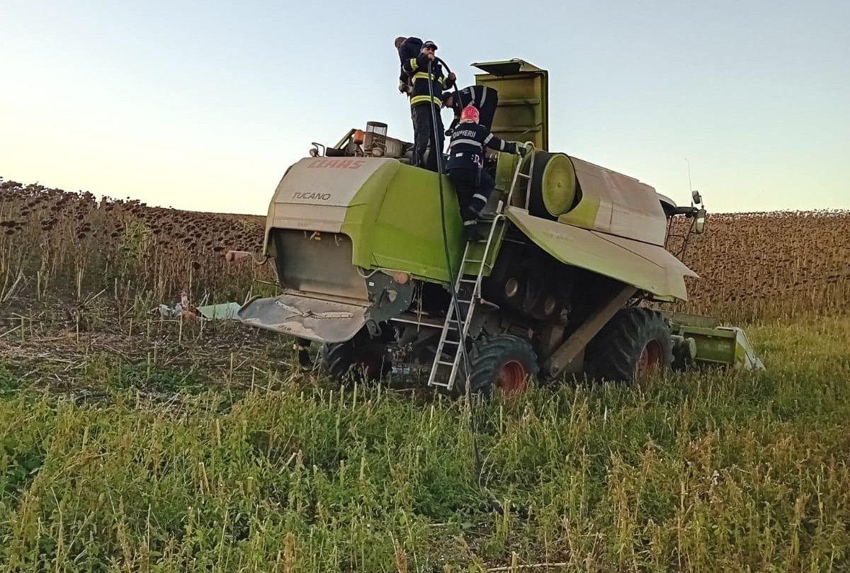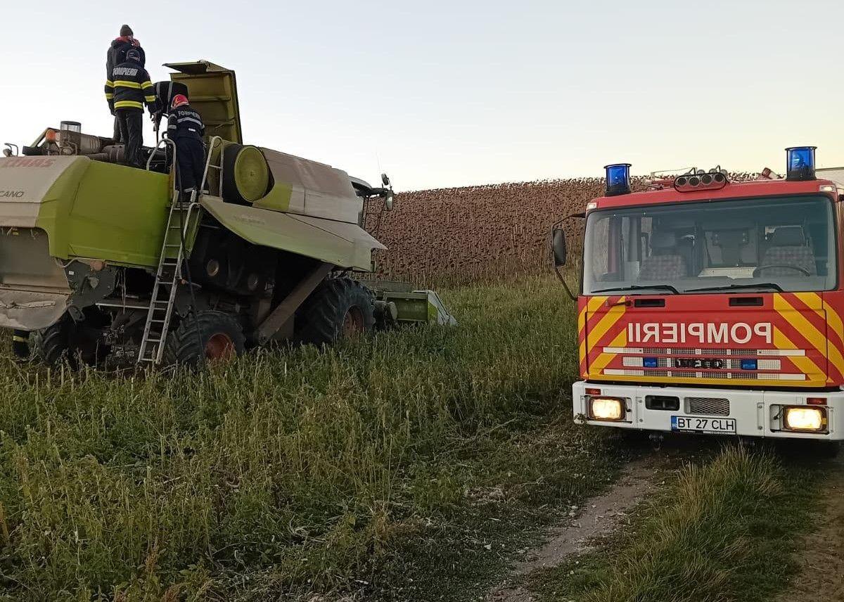 O combină agricolă a fost salvată, în după-amiaza zilei de sâmbătă, 27 septembrie 2025, după ce a luat foc în timp ce treiera floarea-soarelui pe un câmp din localitatea Hlipiceni. Șoferul a observat la timp fumul care ieșea din compartimentul motor, a oprit utilajul și a cerut sprijinul pompierilor.