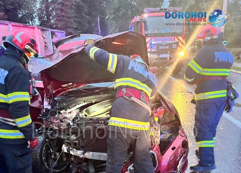 La locul accidentului s-au deplasat pompierii din cadrul Detașamentului de Pompieri Dorohoi, cu o autospecială de stingere și modul de descarcerare, un echipaj al Serviciului Județean de Ambulanță și două echipaje de Poliție. Salvatorii au constatat faptul că niciuna dintre cele trei persoane aflate în mașină nu era încarcerată. Doar conducătoarea auto a suferit răni, fiind preluată de echipajul medical și transportată la spital pentru îngrijiri de specialitate. Pompierii au acționat pentru înlăturarea pericolului de incendiu.