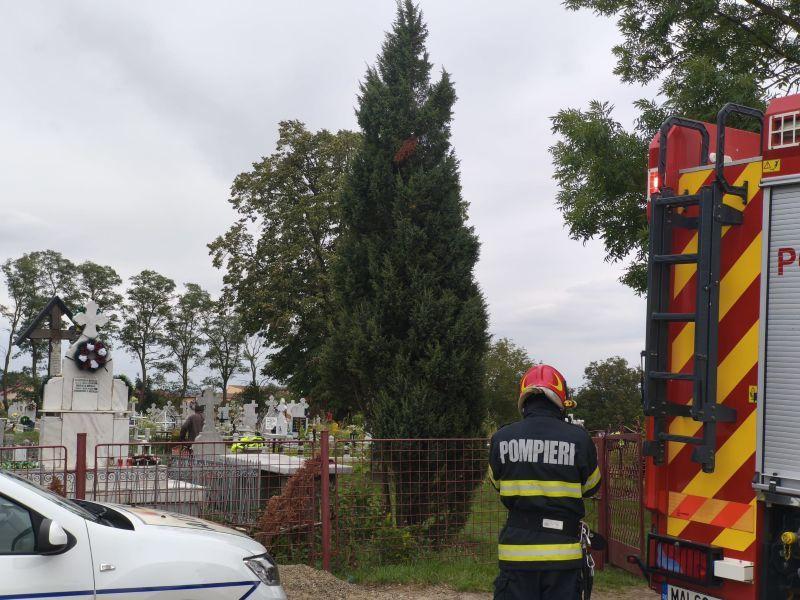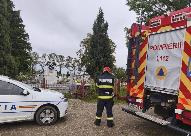 Echipele de intervenție au constatat că victima săpa o groapă în cimitirul din localitate, iar la un moment dat, malul s-a surpat, aceasta fiind blocată până la nivelul genunchilor. Ea a fost extrasă în siguranță, fiind predată echipajului medical pentru acordarea îngrijirilor medicale de specialitate, ulterior fiind transportată la spital.