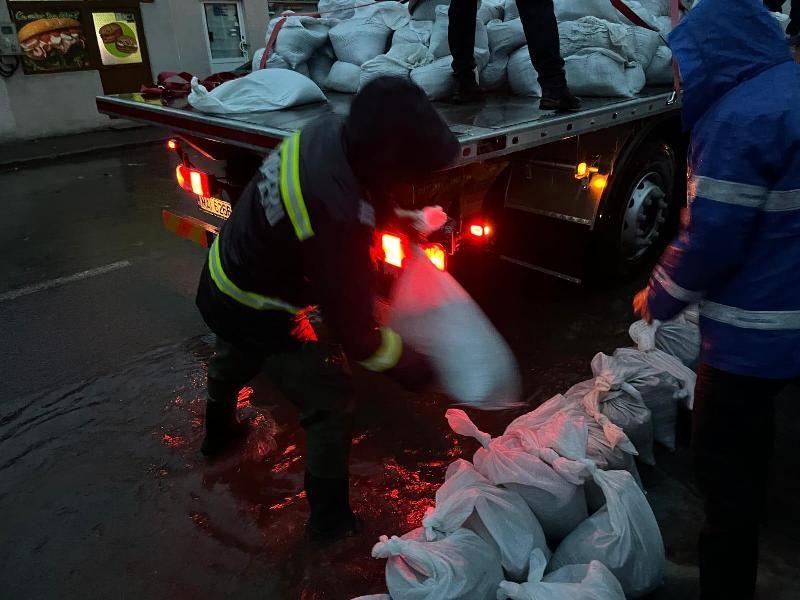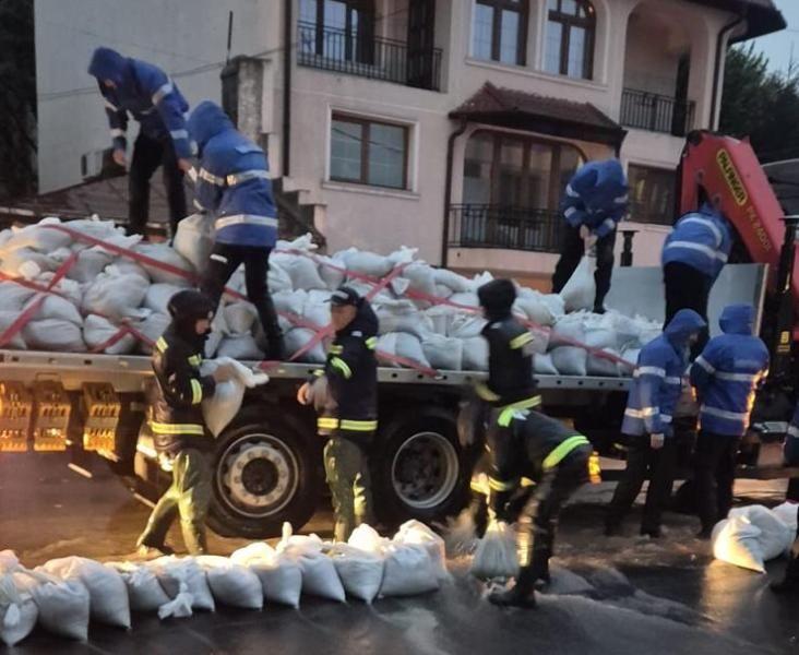 - realizarea unor baraje din saci de nisip, în cooperare cu jandarmii, pentru a bloca scurgerea apei de pe străzile Râsuri și Poporului către strada Izvorului;