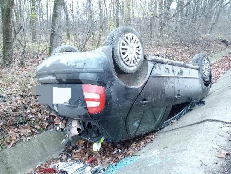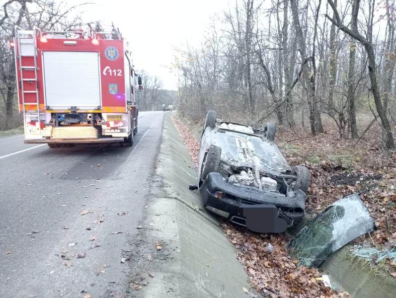 Aceștia au constatat faptul că autoturismul era în afara părții carosabile, răsturnat pe cupolă și că nu erau persoane încarcerate.