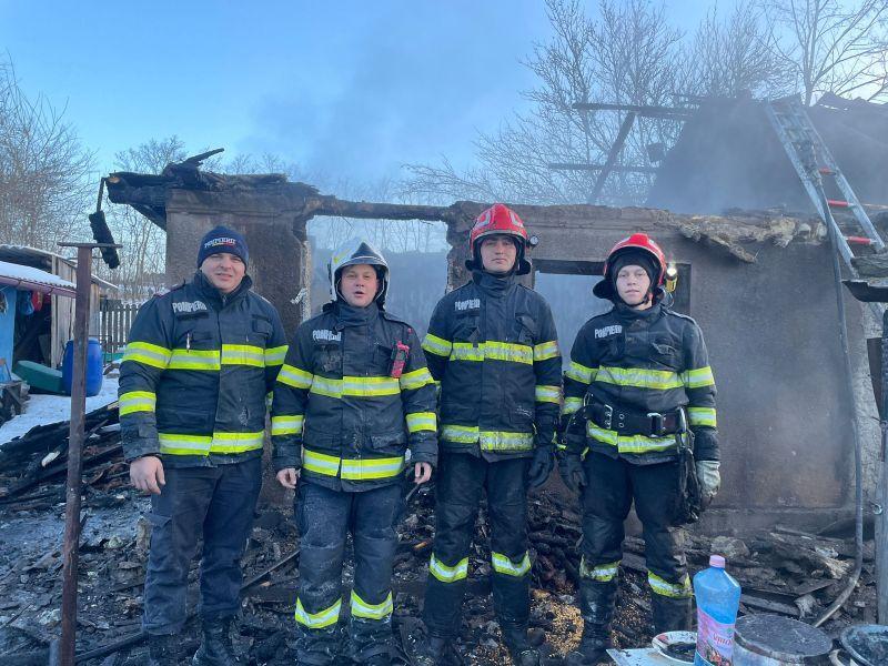 Pompierii au intervenit pentru stingerea incendiului, care a cuprins întreaga anexă, reușind să salveze celelalte construcții din gospodărie. A fost eliminat și riscul de explozie, fiind eliminată o butelie din interiorul clădirii cuprinse de flăcări.