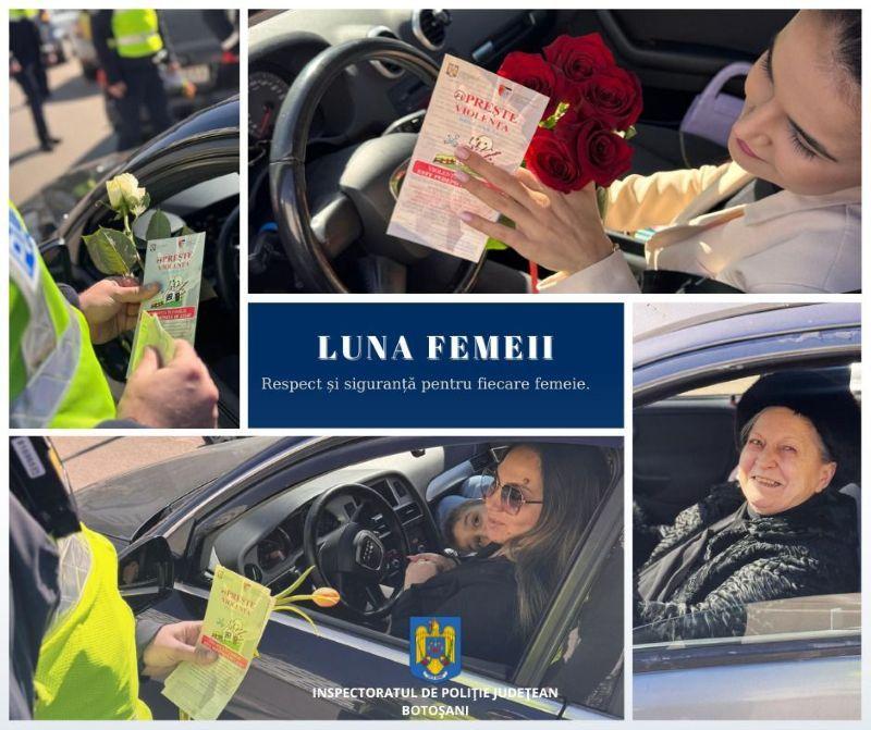 În contextul Zilei Internaționale a Femeii, polițiștii din cadrul Inspectoratului de Poliție Județean Botoșani – Poliția Municipiului Botoșani, împreună cu cei ai Compartimentului de Analiză și Prevenire a Criminalității, au desfășurat o acțiune preventivă în municipiul Botoșani.