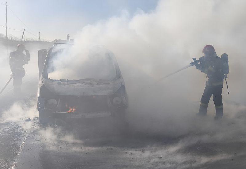 O autoutilitară care se deplasa pe drumul dintre Dumeni și Cordăreni a luat foc miercuri, 11 martie 2026, în jurul orei 15:30. Proprietarul mașinii a observat că iese fum de sub capotă, a oprit imediat și a sunat la 112.