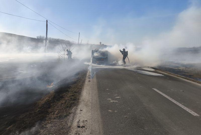 La fața locului s-au deplasat pompierii din cadrul Detașamentului Dorohoi, cu o autospecială de stingere. Aceștia au constatat că ardeau autovehiculul, precum și vegetația uscată de pe marginea drumului, pe o suprafață de aproximativ 30 de metri pătrați. Din fericire, nu au fost persoane rănite.