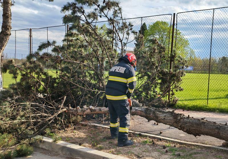 De asemenea, Serviciul Voluntar pentru Situații de Urgență Havârna a intervenit pentru îndepărtarea unui stâlp de telefonie rupt de vânt, care a căzut peste oglinda unui autoturism.