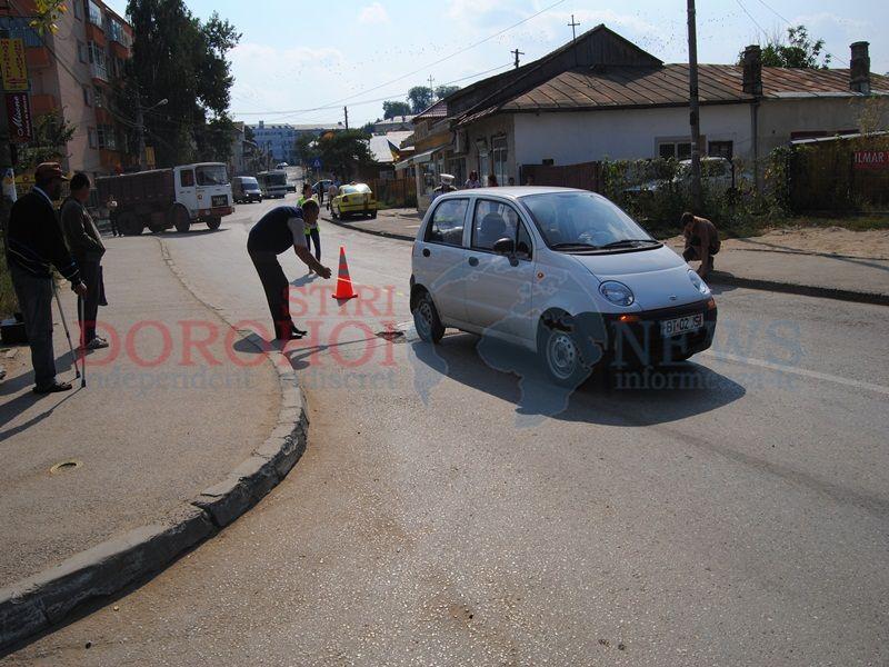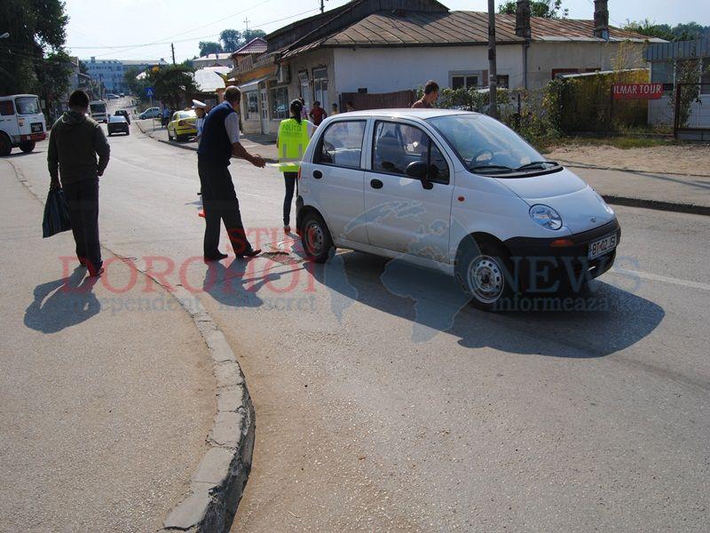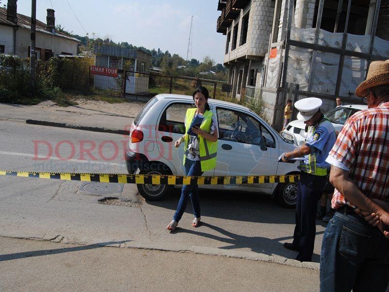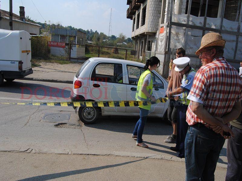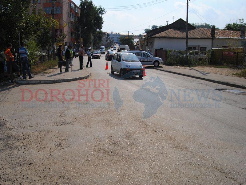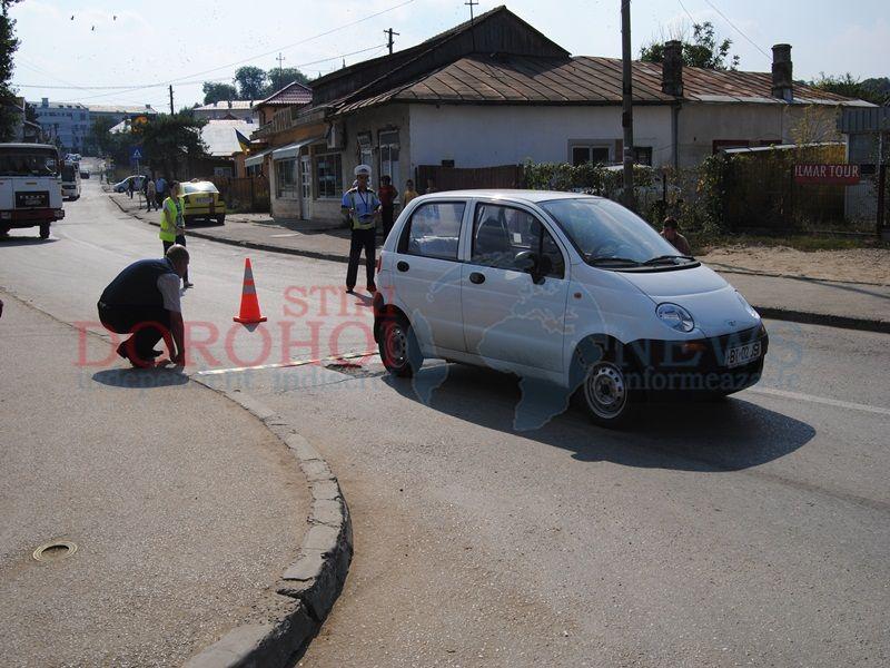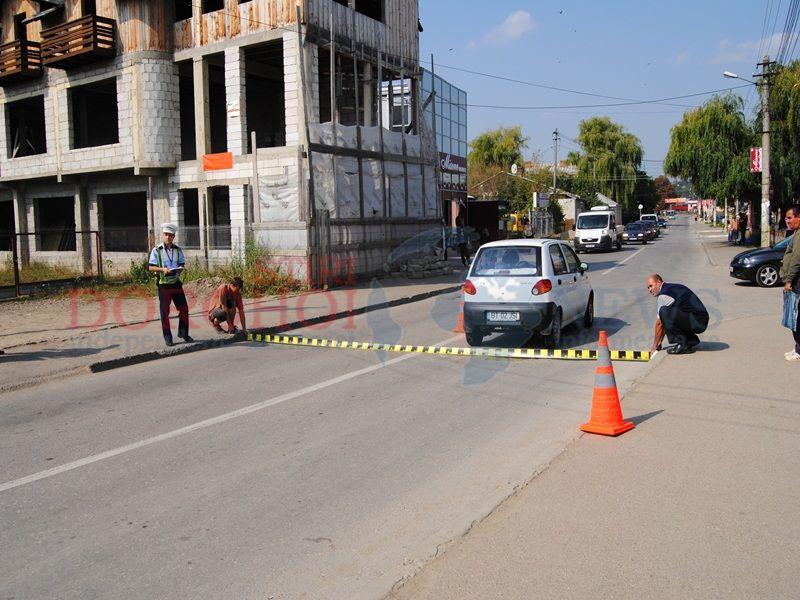 Pietonul, P. I. de 28 ani, din municipiul Dorohoi, care s-a angajat  în traversarea străzii prin loc nepermis şi fără să se asigure, a fost rănit uşor de un automobil marca Matiz, de culoare albă, condus de B. C. de 60 ani, din municipiu. Victima a fost transportată la Spitalul municipiului Dorohoi, unde a primit îngrijiri medicale, fără a rămâne internată. Conducătorul auto a fost testat cu aparatul etilotest, rezultatul fiind negativ. Atât acestuia, cât și pietonului li s-au recoltat probe biologice de sânge în vederea stabilirii alcoolemiei. În cauză continuă cercetările, urmând a se dispune procedural..