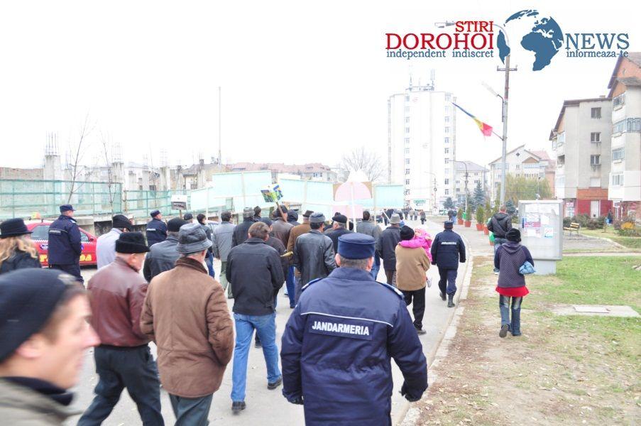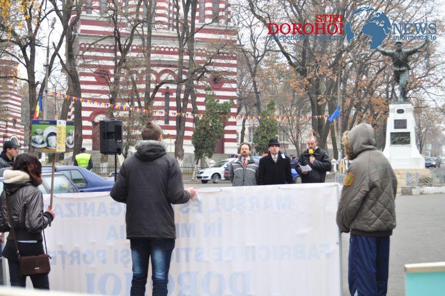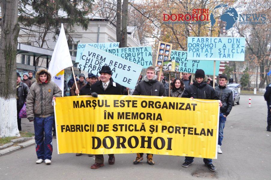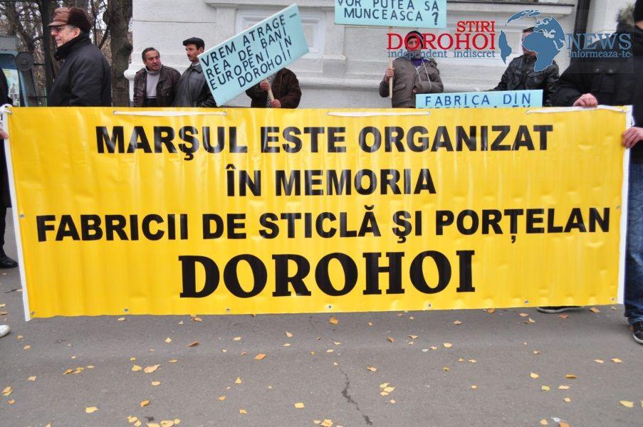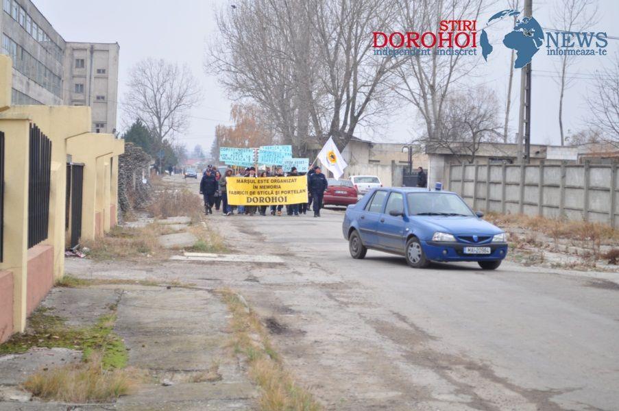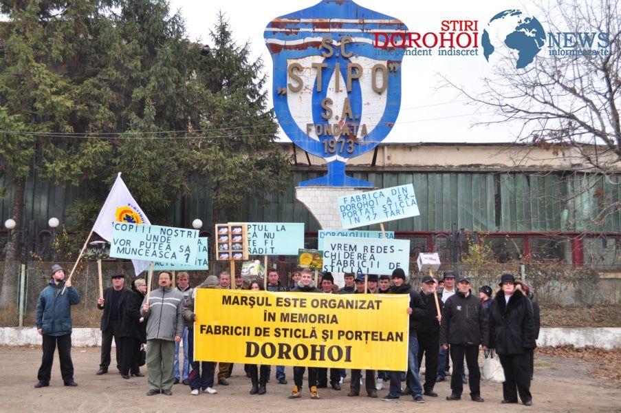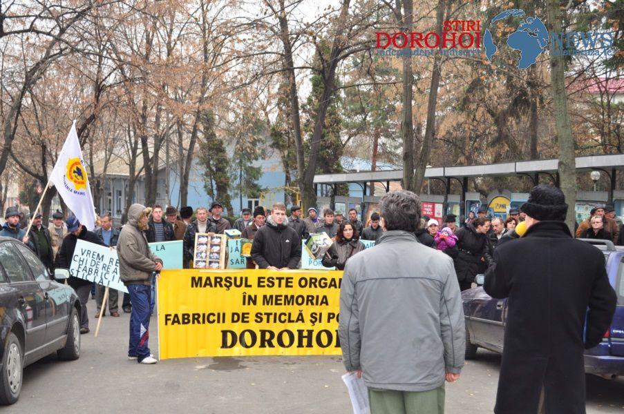 Apoi manifestanţii, înarmaţi cu pancarte şi flancaţi de jandarmi şi poliţişti, au pornit într-un marş până în zona industrială, la fosta fabrică de sticlă și porțelan Stipo, unde președintele organizației PRM Dorohoi, Ioan Muha a ținut un scurt discurs.