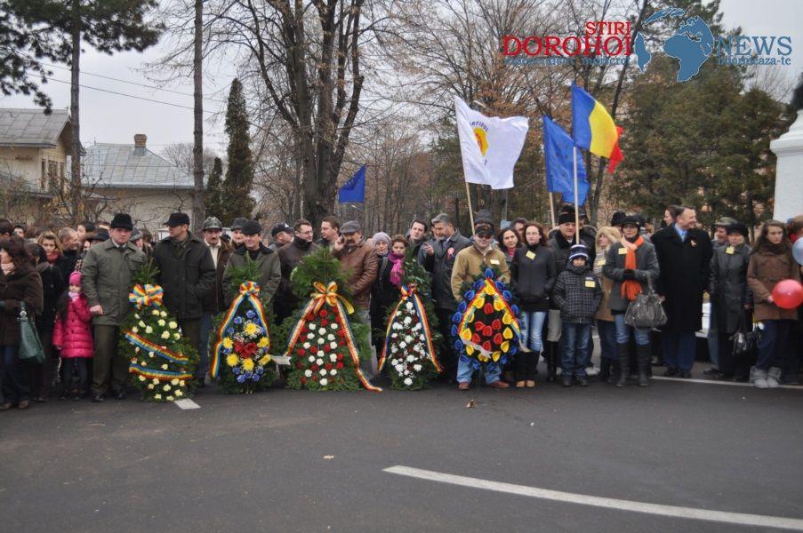 O slujbă religioasă de sfințire, discurs a oficialităţilor, depuneri de coroane şi distrubuirea de fasole cu cârnaţi şi vin fiert, acestea sunt coordonatele sub care s-au desfăşurat la Dorohoi, manifestările dedicate Zilei Naţionale a României.